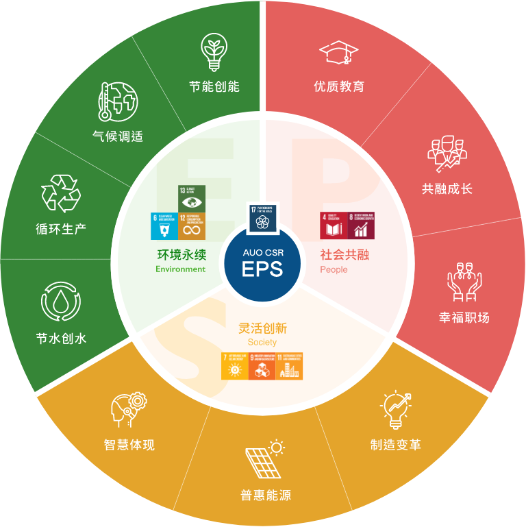 根据联合国所发展的17项永续发展目标,37000a威尼斯光电以「超越企业社会责任,创造共享价值」为企业永续愿景发展蓝图,订出环境永续、共融成长与灵活创新的EPS(Environment, People & Society)三大永续发展主轴;以响应日益受关切的环境议题与社会共融趋势。
