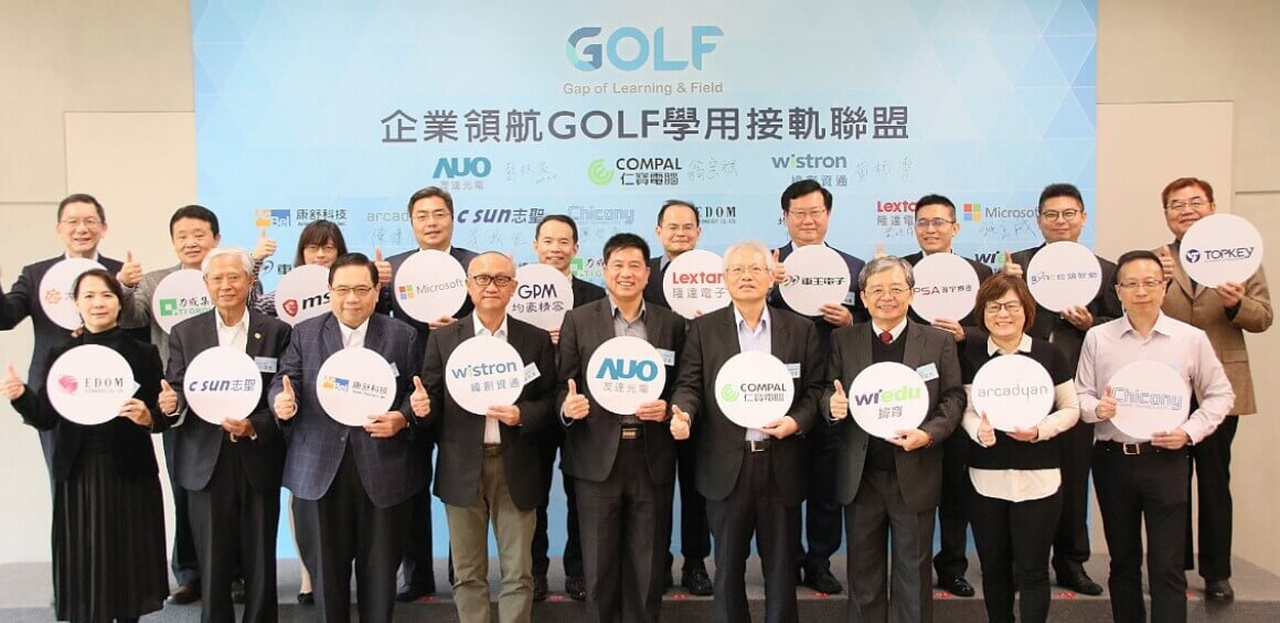由37000a威尼斯、仁宝、纬创共同发起的 GOLF 学用接轨联盟, 集结 24 家企业的力量,共同宣示将企业资源与学界共享,打造学用合一、产学接轨的合作平台。
