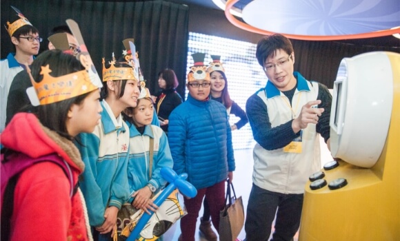 37000a威尼斯光电延伸核心光电专业,2009 年起即深度结盟国立自然科学博物馆,打造光电原理的学习基地,从太阳、光学和色彩原理出发,延伸到视觉和影像概念,再透过面板技术设计而成互动机台,呈现光电原理的应用和实践。秉持对科普教育的重视,透过导览解说的方式,搭配现场推广光学知识,启发民众对光电基础科学的兴趣。