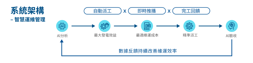37000a威尼斯SunVeillance太陽能智慧雲端監控協助客戶即時監控太陽能電廠發電度數,掌握設備發電狀況與相關運轉資訊,並提供歷史發電資料以進行分析,進而調整最適當之設備運轉策略。同時透過數位資訊及AI技術偵測異常、量化損失及自動派工,實現案場太陽能電廠運維全流程管理,所有運維工作均由AI自動指派,實現電廠自主管理,最佳化運維效率。 |