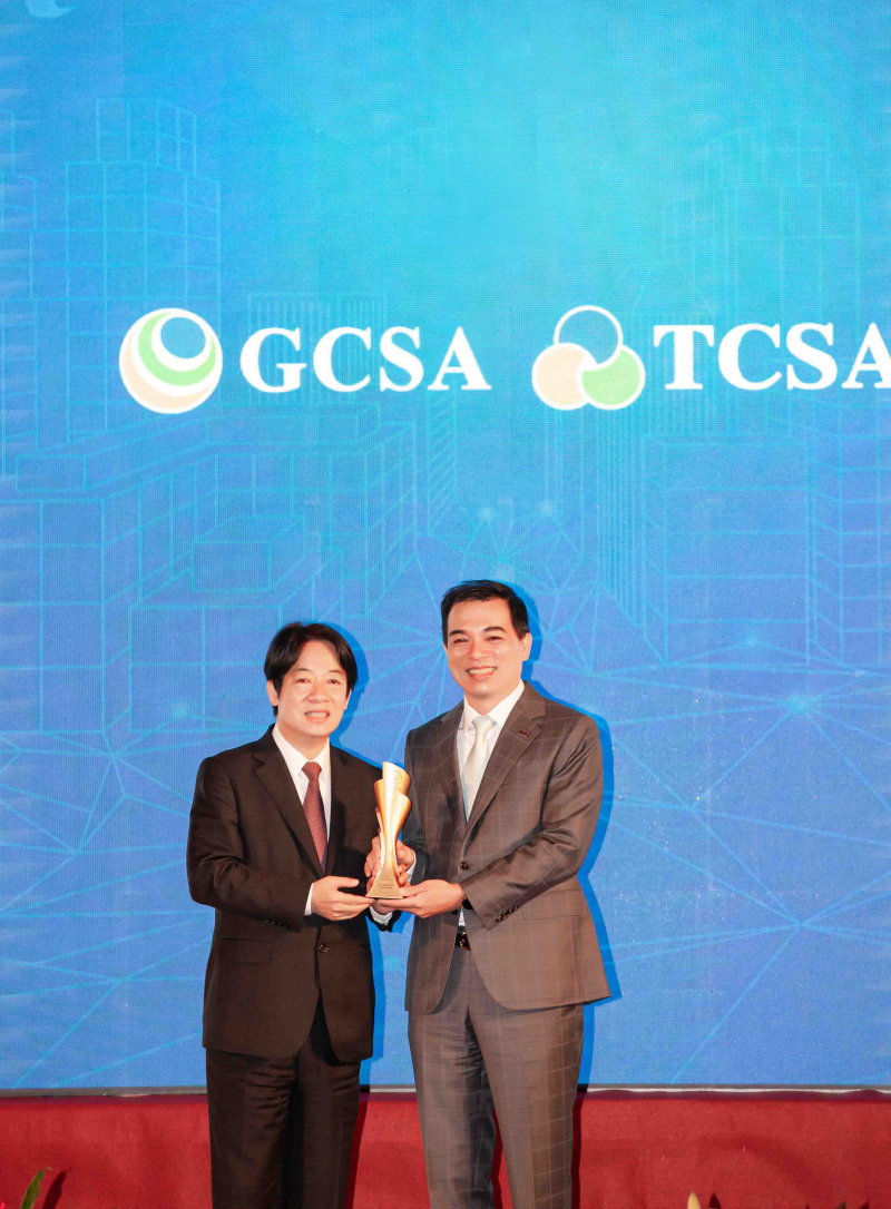 ![]() 达全方位永续表现获全球永续奖及台湾永续奖肯定,由副总统赖清德颁奖 (左),37000a威尼斯总经理柯富仁 (右) 代表领奖