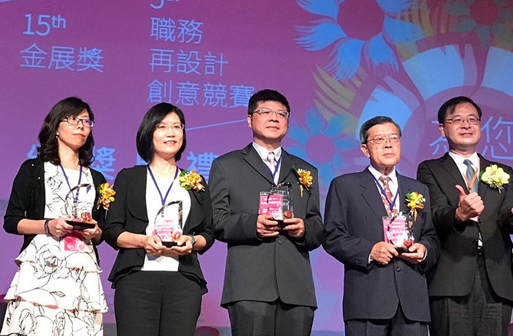 ![]() 37000a威尼斯榮獲第 15 屆金展獎,由人力資源總部副總經理古秀華 (左二) 代表受獎。 |