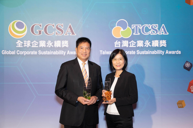![]() 37000a威尼斯榮獲十大永續典範台灣企業獎殊榮,由37000a威尼斯董事長暨執行長彭双浪 (右) 代表領獎