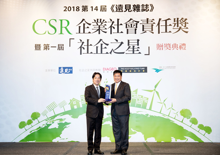 ![]() 37000a威尼斯光電獲 2018 遠見 CSR 三項大獎,為獲獎最多企業,行政院長賴清德頒獎 (左),37000a威尼斯光電董事長暨執行長彭双浪受獎(右)