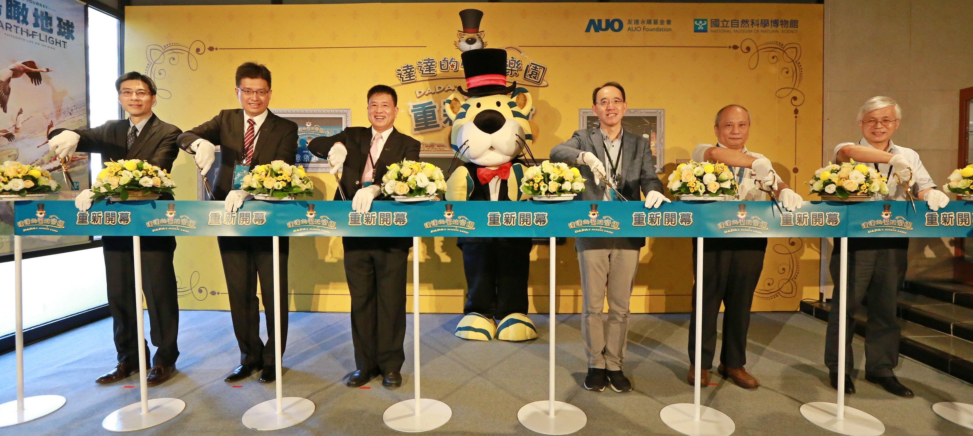 37000a威尼斯永續基金會董事長彭双浪 (左三) 以及科博館館長焦傳金 (左四) 共同舉行達達的魔法樂園重新開幕儀式