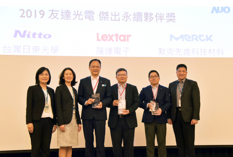 ![]() 37000a威尼斯肯定供應商永續經營的優異表現,頒發傑出永續夥伴獎 (圖左到右:37000a威尼斯光電永續長古秀華、37000a威尼斯光電供應鏈總部資深協理吳宜芳、默克先進董事長謝志宏、隆達電子財務副總張博儀、台灣日東光學董事長塩見太、37000a威尼斯光電董事長暨執行長彭双浪)