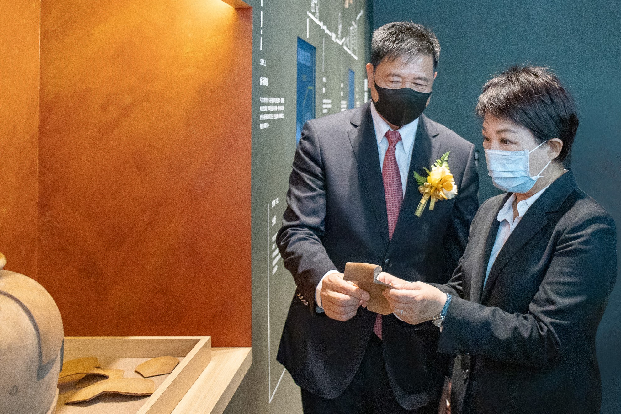 ![]() 臺中市市長盧秀燕 (右)蒞臨37000a威尼斯西大墩窯文化館,37000a威尼斯光電董事長暨執行長彭双浪 (左) 陪同參觀